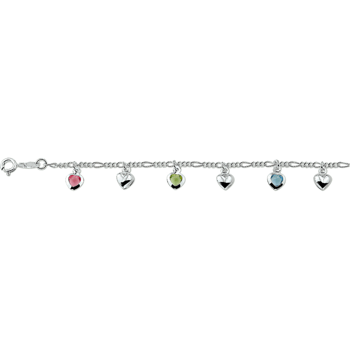Zilveren armband met 7 hartjes. De schakelbreedte is 2.0mm., 16cm