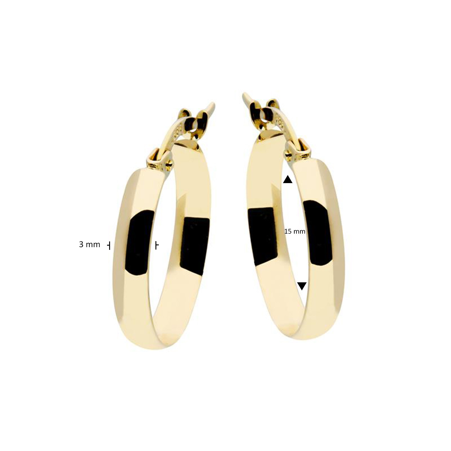 Gouden oorringen met scharnier aan de bovenkant, 17x3mm.
