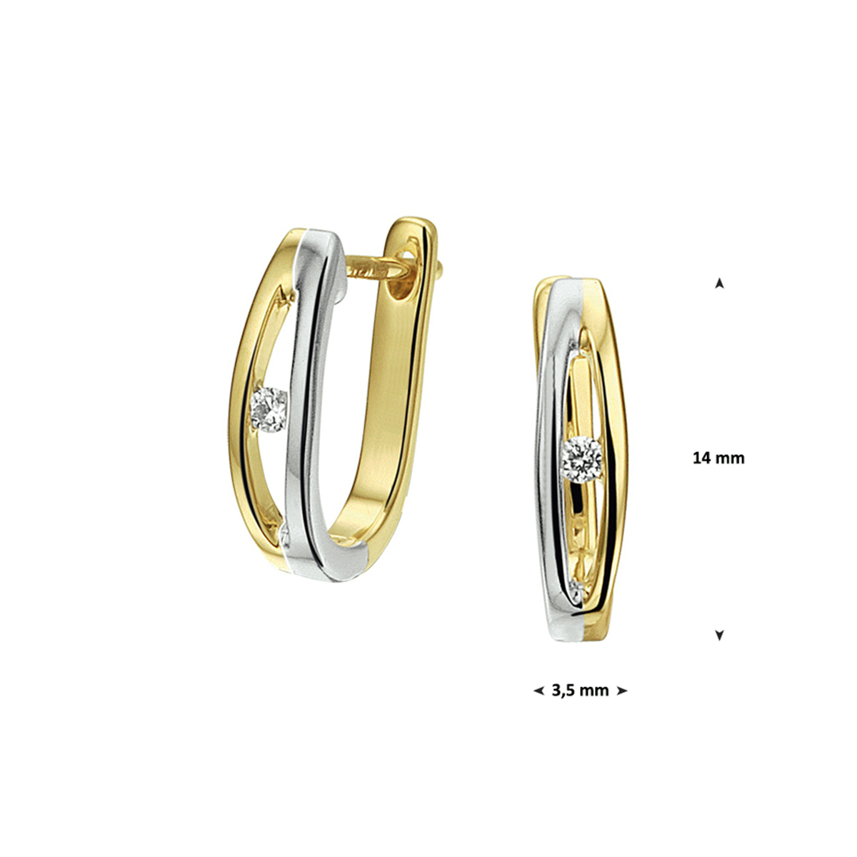 Bicolor gouden klapoorringen met diamant 0.045ct (2x0.022ct. H/Si).