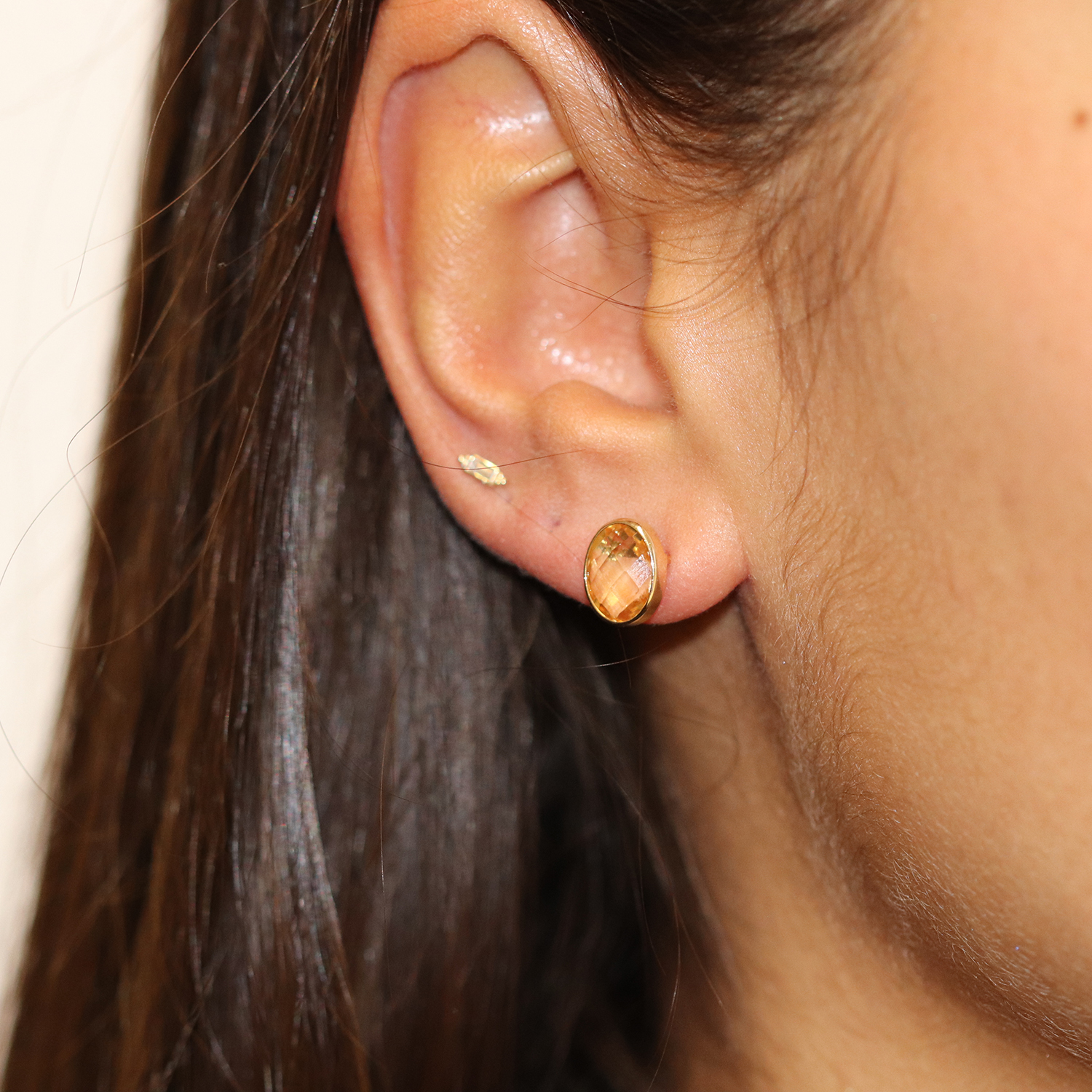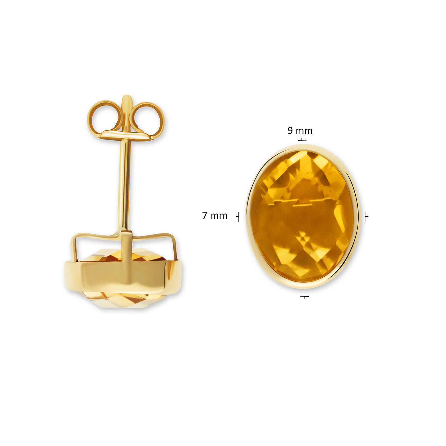 Gouden oorstekers met een ovalen gefacetteerde citrien 9x7mm.