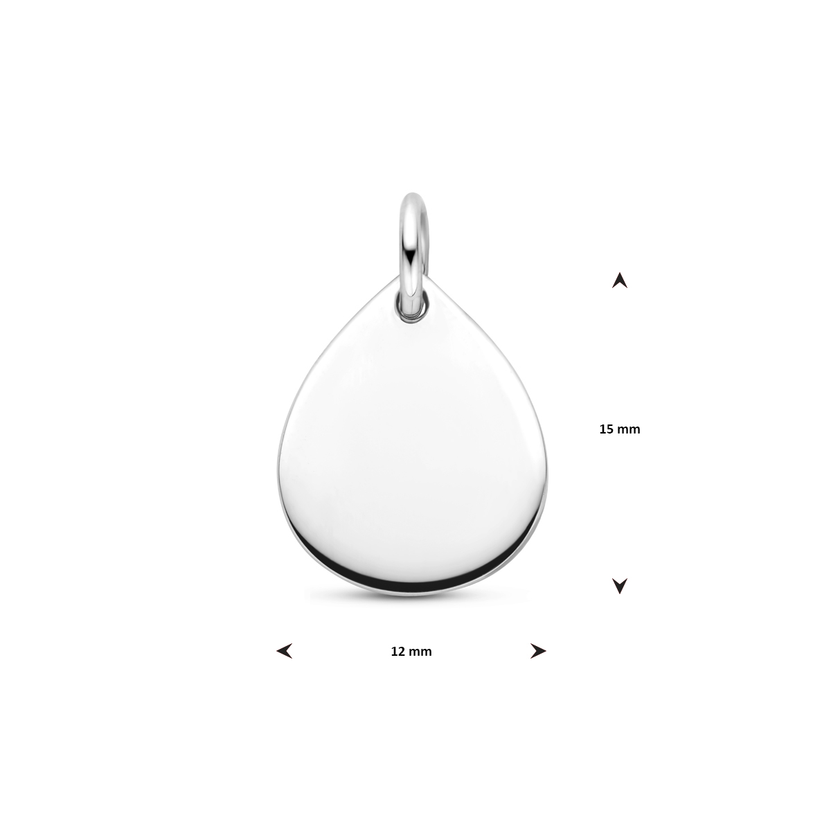 Gerhordineerd 925 zilveren graveerhanger uitgevoerd in de vorm van een druppel. De hanger heeft een totale hoogte van 18 mm. En het graveerplaatje heeft een afmeting van 15x12 mm.