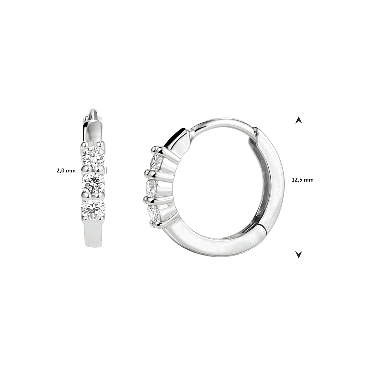 14k Witgouden klapoorringen uitgevoerd met een schitterende diamant rij. De oorringen hebben een afmeting van 12.5x2mm