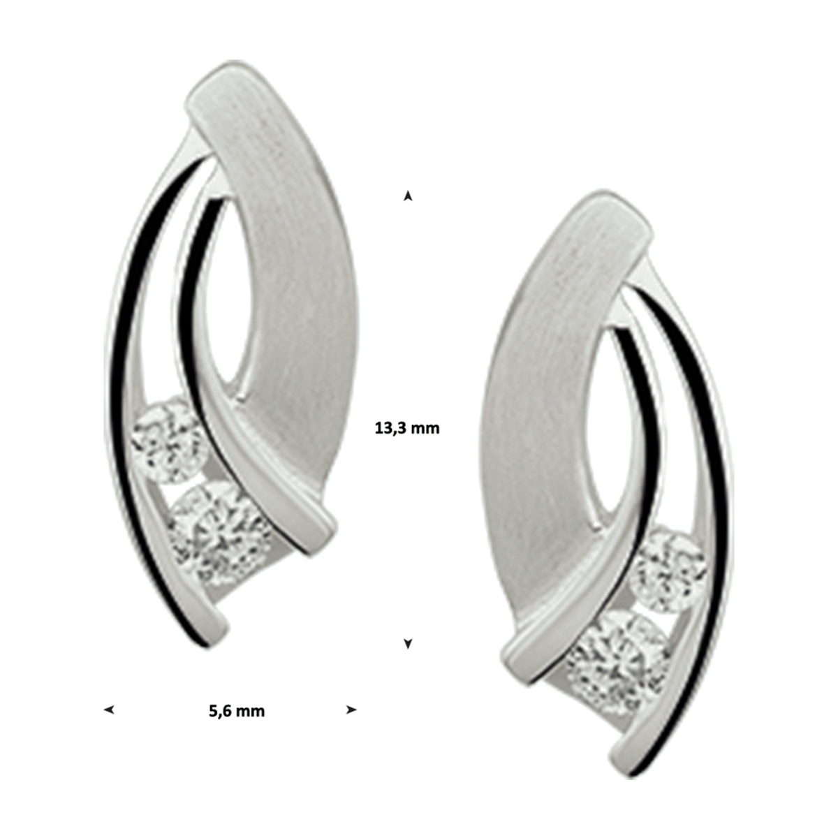 Zilveren oorknoppen met zirkonia, poli/mat gerhodineerd