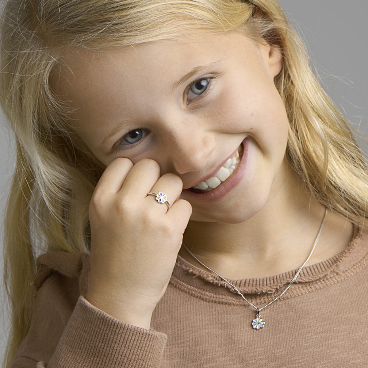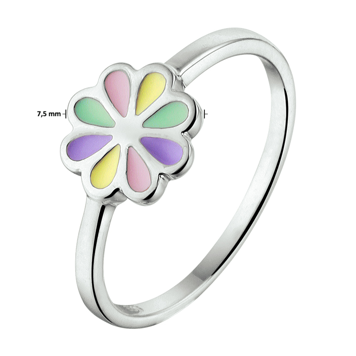 Gerhodineerd 925 zilveren ring uitgevoerd met een bloem. De breedte van de ring is 7.5mm.
