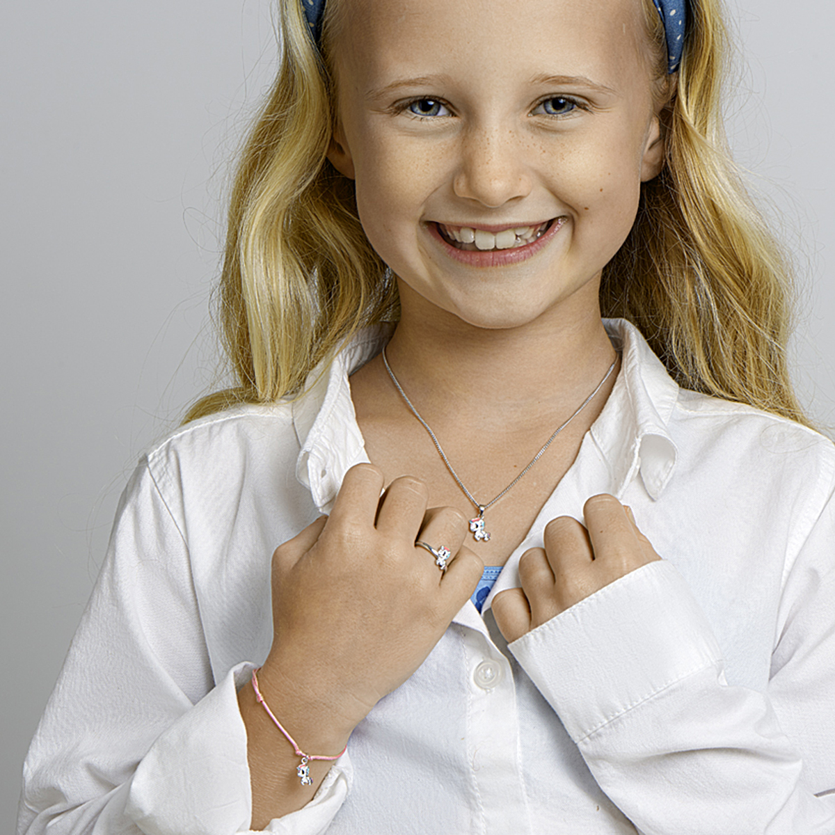 Gerhodineerd 925 zilveren eenhoorn ring uitgevoerd met gekleurd emaille. De ring heeft een breedte van 8.5mm.