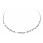 Zilveren gerodineerde choker bestaande uit matte en glanzende ovalen schakels met karabijnsluiting, lengte 43cm.